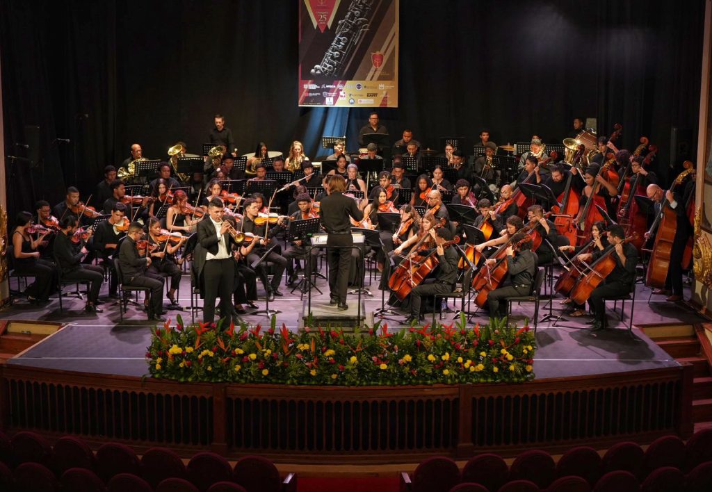 Un imponente concierto con 90 jóvenes músicos en escena sirvió de cierre para las XI Clínicas Instrumentales Unibac, en el teatro “Adolfo Mejía”, este viernes 10 de octubre.